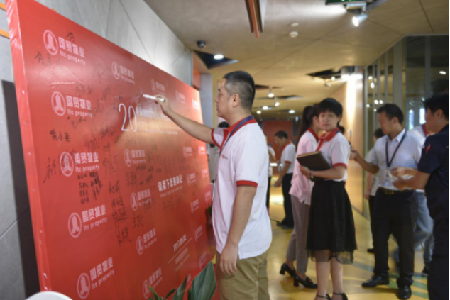 大会开始前,一段暖场视频,带我们进入氛围,讲述了小伙伴们在滨江奋斗的点点滴滴,真正诠释了“国贸人”的含义。首先杭州分公司滨江项目总监江旭为我们致辞,分享了来滨江前后的感想,及对项目组织架构的介绍,各部门经理上台做了部门工作职责汇报,未来的我们“无需迎合,只需要磨合后的融合”。 在激昂的旋律下,开始举行授徽仪式,由江sir带领全体小伙伴佩戴上司徽,欢迎各位新伙伴加入国贸大家庭,接下来,由杭州分公司副总经理陈嘉星发言,靐哥在会上说到,我们要互相融合、互相扶持,风雨同舟,携手走下去。 在本次接管活动中,感谢国贸总部工程查验小组给我们带来的支持,一段接管进程回顾视频,让我们看到了“老人”们散发出来的国贸味儿,看到了国贸人的越挫越勇,勇往直前。查验小组组长王建良总结到:未来的路还很长,我们要不忘初心,将心酸化为坚定,不管未来的路有多难,我们一直在路上。