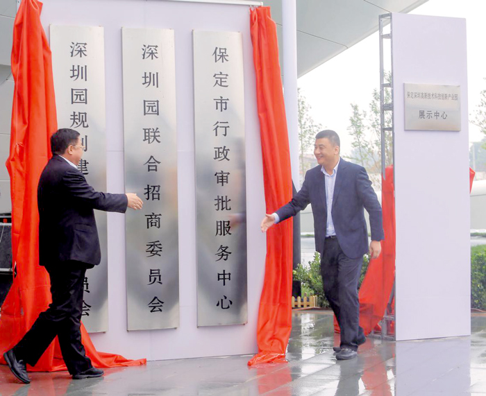 河北省人大副主任、保定市委书记聂瑞平,保定市委副书记、市长郭建英,投控公司总工程师王戈等为保定深圳园揭牌,保定市委常委、常务副市长李俊岭参加揭牌仪式。