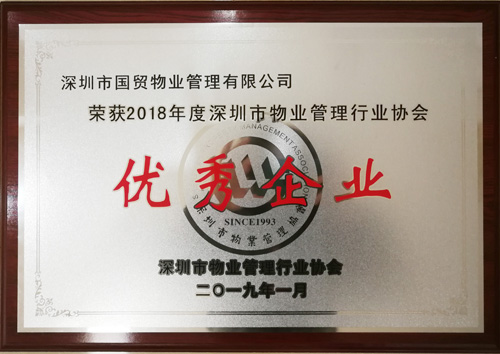 国贸物业荣获2018年度深圳市物业管理行业协会 “优秀企业”荣誉称号