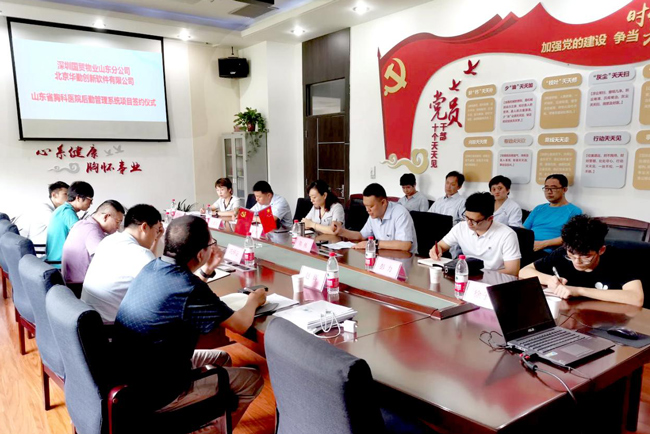 会议最后山东分公司与北京华勤签署了合作协议,并双方均表示将共同推进医院后勤智慧管理系统平台最终的落地及使用,为山东胸科医院打造标杆性智慧医院努力。