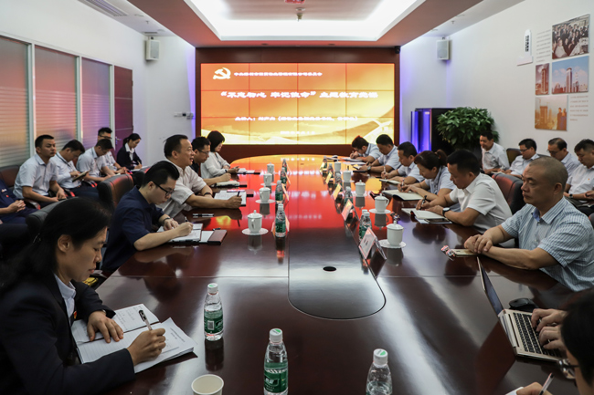 为深入学习贯彻习近平新时代中国特色社会主义思想,落实“不忘初心、牢记使命”主题教育相关工作安排, 8月1日上午,深物业集团党委书记、董事长刘声向带领集团副总经理张戈坚、党办副主任肖志龙和管理部黄华璐一行四人,在公司党委书记、总经理王秋平等人陪同下莅临我司调研,并给全体党员和中层以上干部上了“不忘客户初心、牢记服务使命”主题党课。