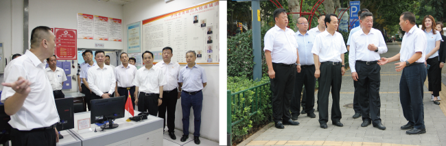 9月4日下午,济南市副市长吴德生一行莅临公司英人防项目部调研指导安全管理工作,市人防办主任杨庆绪、人防工程管护中心主任亓恒义、英雄山人防商城总经理臧家伟等陪同调研。