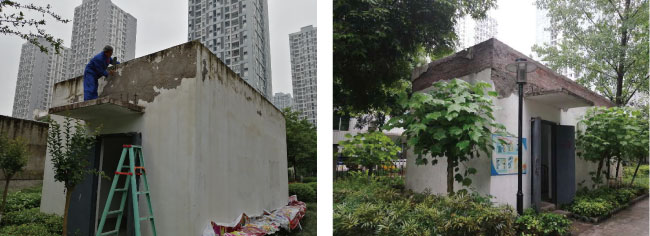 重新修建的37个生活垃圾临时堆放池不仅增加了高度、安装了清洗给排水系统,新贴的外墙砖让它有了一份祥和,与小区的整体环境相得益彰,改变了垃圾池一定是破、脏、臭的传统形象。