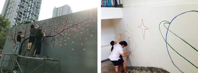 “灿烂的向日葵”、“母女”更增强了我们的自信,让我们有勇气挑战外墙大型彩绘。