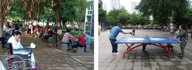 小区休闲区域新建40套桌椅,老人在此喝喝茶、聊聊天、下象棋、玩纸牌,老年生活快活自在;