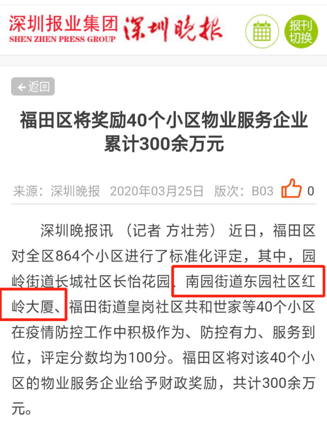 其中,红岭大厦在疫情防控工作中评定分数为100分,综合指标评价位于福田区第二名,被评积极作为、防控有力、服务到位,并给予特别财政奖励!这种评价不仅仅是经济上的,更体现了政府主管部门对国贸物管公司疫情防控工作的认可和肯定。