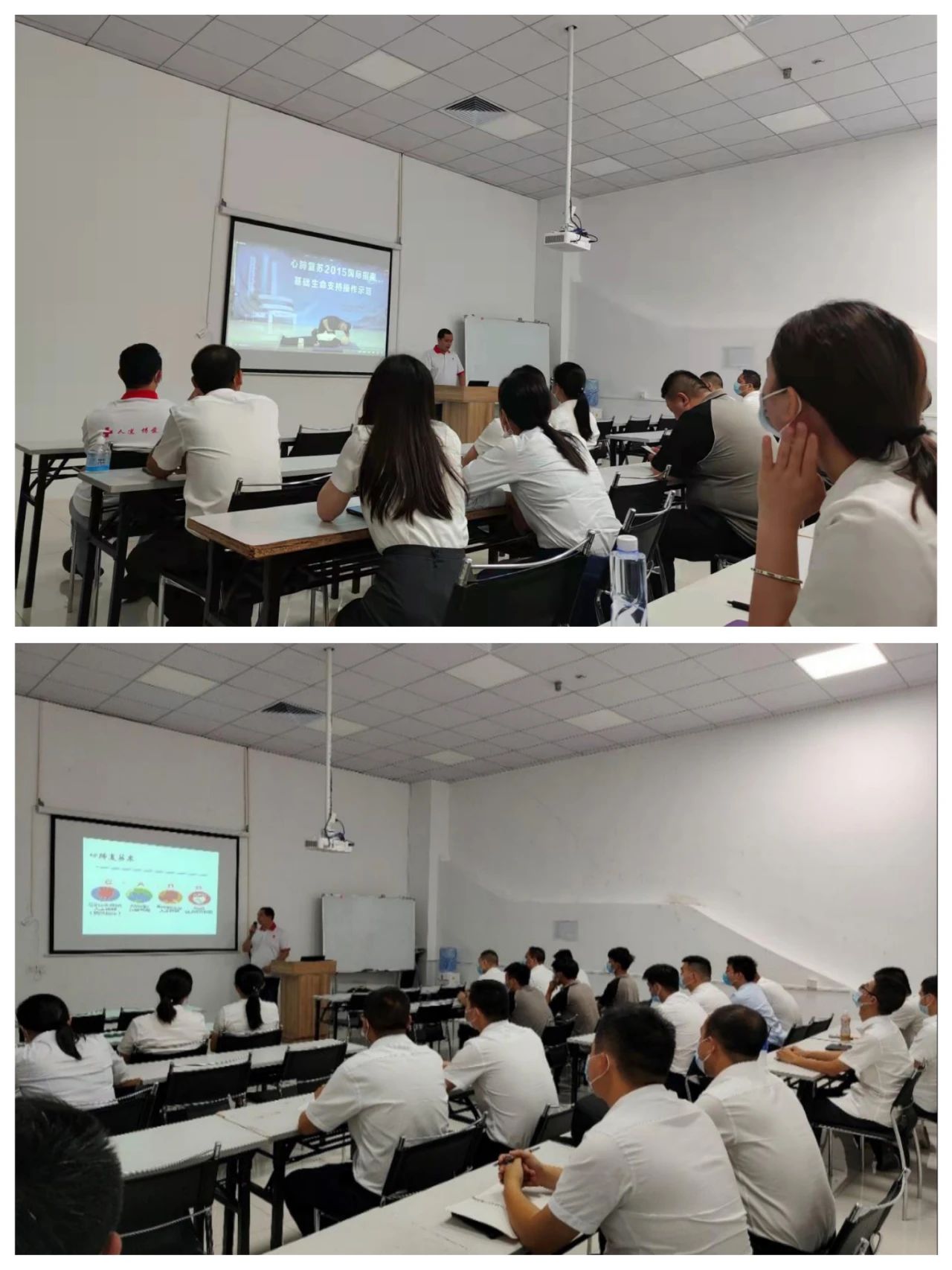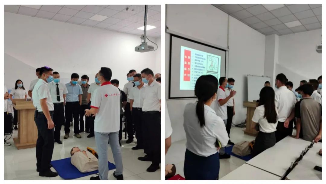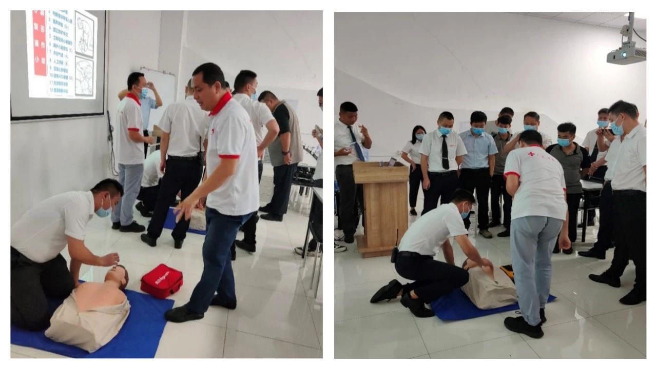 红十字会专家以理论讲授、现场演示、实践操作等方式进行授课,以近年来发生在身边的鲜活事例,通过播放幻灯片和视频、展示实物、现场演示等形式,向员工们强调了应急救护“黄金四分钟”的重要性,随后逐一讲解了胸外按压、人工呼吸、伤员搬运等急救理论与施救技巧,并现场实操心肺复苏、人工呼吸、aed除颤等方法,向员工普及日常的急救知识。
