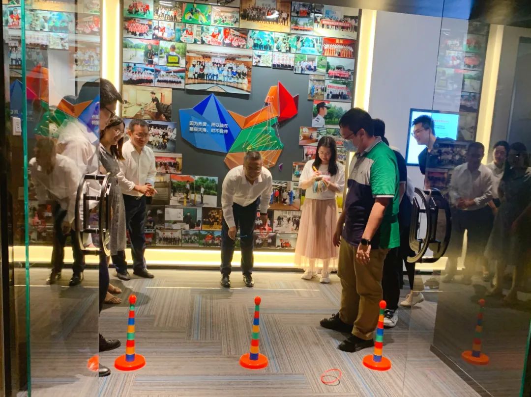 活动现场设置了通关游戏区、甜品区及兑奖区,每位参与活动的员工在兑奖区领取一张游戏通关卡,通过完成彩虹套圈、狂甩便利贴、踢毽子三个游戏,集齐三个通关章后领取手工花灯,制作完成即可兑奖。全体员工踊跃参加各项游戏,加油声、欢笑声此起彼伏,欢快、热烈的气氛充满整个活动现场,让大家感受到了浓浓的节日氛围。