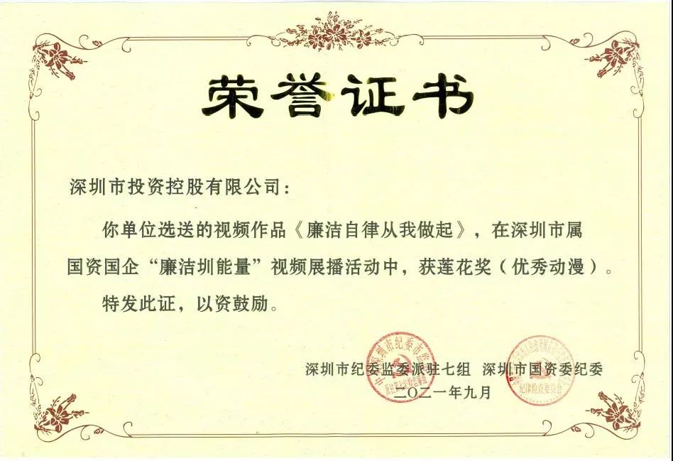 产业园分公司视频作品荣获市属国资国企“廉洁圳能量”视频展播活动“莲花奖”