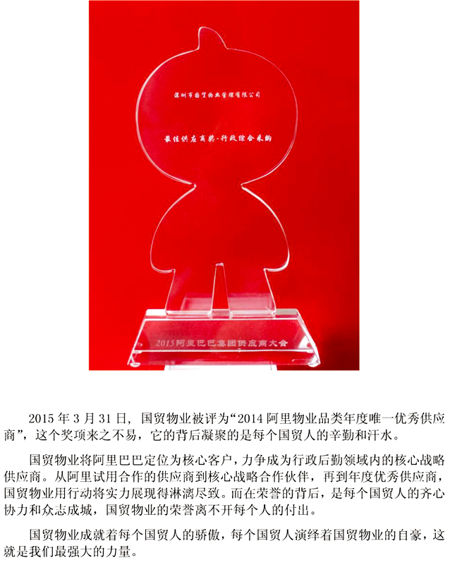 国贸物业获称“2014阿里物业品类年度优秀供应商”