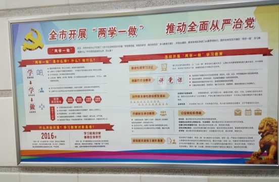 7月上旬至中旬,为深入推进“两学一做”学习教育活动,营造良好的学习氛围,切实提升党员队伍的思想、组织、作风和纪律意识和工作能力,公司党委认真组织全体党员积极参加省委组织部开展的“两学一做”学习教育网络答题,以考促学。我公司党员人数较多,从事一线工作的党员占有一定的比例,分布在所属的16个部门,在各支部的大力支持和共同努力下,克服人员分布、电脑配置不均匀、工作时间不一致等不利因素,克服重重困难,全公司的45名党员全部参加了考学活动,参加率达100%,圆满地完成了此次学习教育活动。 自“两学一做”学习教育活动开展以来,公司党委努力营造“两学一做”的学习氛围,为每个支部印制了专题海报、党委制作宣传板报;公司领导干部和支部书记带头学习并做好“两学一做”学习教育笔记;积极开展考学、观看专题学习教育片以及参观革命教育基地等形式多样的活动,认真引导党员学习党章党规、学习习总书记系列讲话精神,尊崇党章和敬畏党纪党规,坚定理想信念,保持对党忠诚,树立清风正气,勇于担当作为,引导党员干部立足岗位工作、履职尽责,努力工作,切实发挥先锋模范作用,为公司的持续健康发展做出应有的贡献! 为认真贯彻落实“两学一做”学习活动,国贸物业党委十分重视,专门制作了宣传板报,并在各党支部张贴。