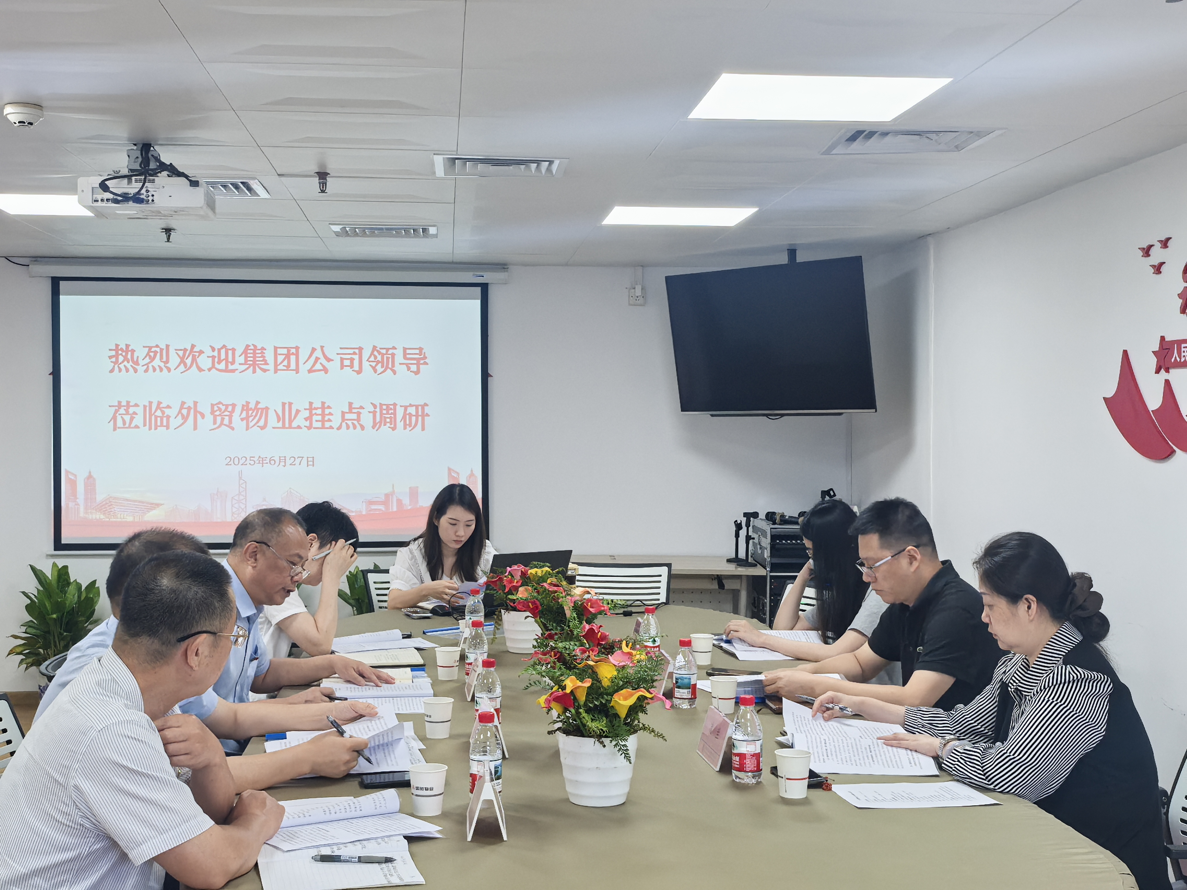 近日,深物业集团党委委员、副总经理张戈坚率队赴外贸物业公司开展挂点服务企业调研,外贸物业公司领导班子全体成员及各部门负责人参加调研座谈会,集团董事会、办公室,国贸物业公司相关负责人陪同调研。