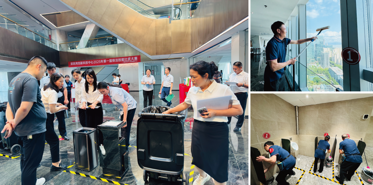 为进一步加强员工职业技能水平,近日,国贸科技园公司联合深圳市升阳升人居环境服务有限公司在创新中心项目举办首届物业保洁技能比武大赛,一线从业人员踊跃参赛。