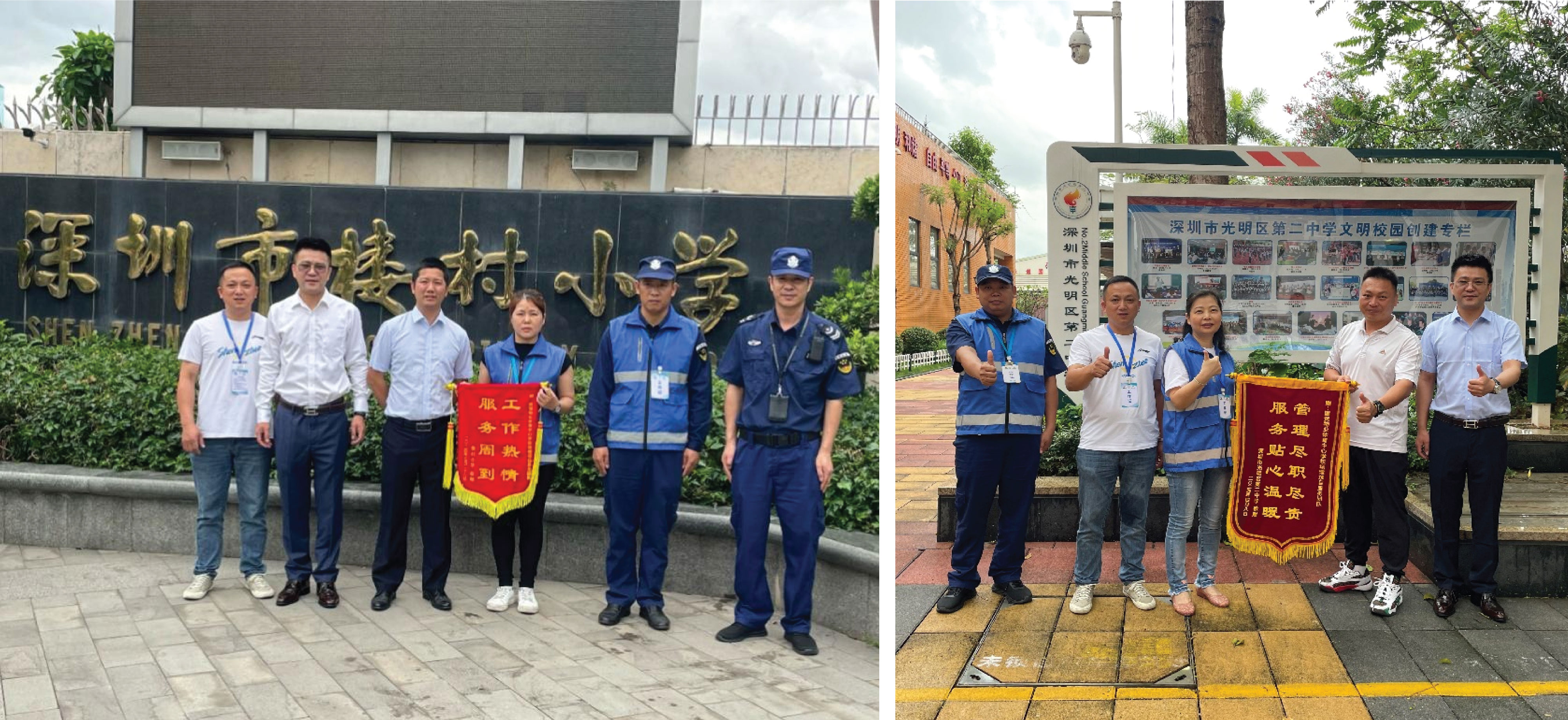 自3月27日国贸科技园公司体育中心学校项目收到光明区公明一小的表彰锦旗后,4月3日、4月19日再次收到来自光明楼村小学和光明二中的表扬锦旗。三面锦旗的肯定,极大地鼓舞了体育中心学校项目各场馆管理员的工作热情,同时也表达了各学校对公司现场管理和服务工作的认可。