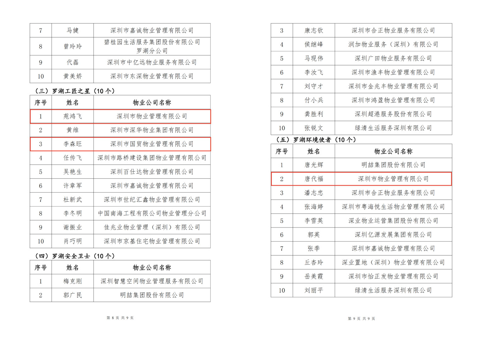 此外,国贸物业及国贸深物公司共3名员工荣获“罗湖物业之星”殊荣。其中,国贸物业李森旺、国贸深物苑鸿飞荣获“罗湖工匠之星”,国贸深物唐代福荣获“罗湖环境使者”。
