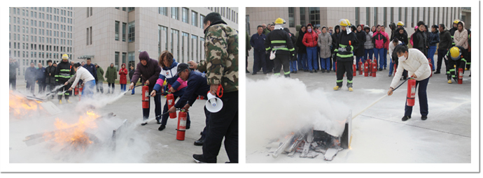 理论培训中,贺亮经理从消防器材的种类、原理、使用方法、实际操作等一一地作了详细介绍,并通过实际案例向在场人员强调了预防火灾的方法及火灾的危害性,同时详细介绍了政务综合大楼的消防通道、消防设施和日常消防安全工作。然后大家分组进行了实践操作,真实体验了消防器材的使用和操作程序。