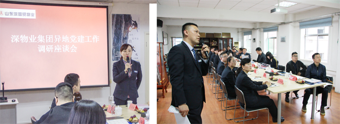 为进一步贯彻落实关于基层党建工作的有关要求,全面了解和掌握下属公司的工作开展情况,11月6日—7日,深圳市物业发展(集团)股份有限公司(以下简称深物业集团)党委书记/董事长刘声向、党委副书记/纪委书记魏晓东、集团副总经理范维平、党群办公室主任李祝红等领导一行,在深圳国贸物业公司总经理王文浩的陪同下,赴山东深国贸物业公司调研、视察工作。
