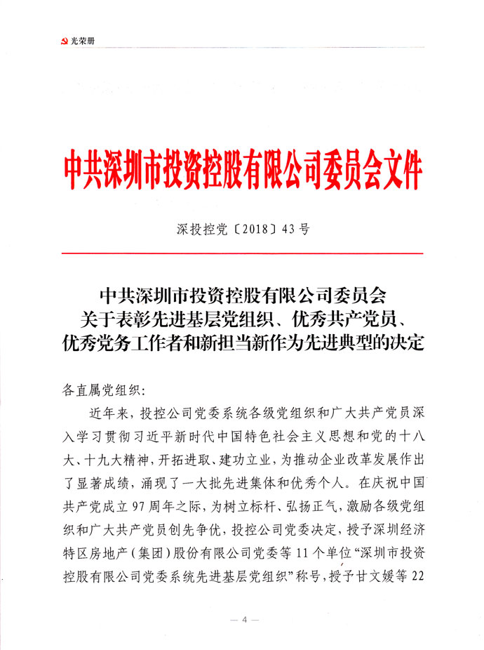 为庆祝中国共产党成立97周年,表彰近年来投控公司党委系统各条战线涌现出的先进典型,进一步激励各级党组织和广大共产党员不忘初心、牢记使命、砥砺奋进,投控公司党委于7月2日下午召开庆祝中国共产党建党97周年大会。我公司第二党支部荣获“先进基层党组织”称号。