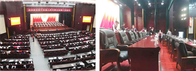 满洲里市第十五届人民代表大会第一次会议于2017年12月5日—8日在市党政办公大楼二楼大会议室召开,这是全市人民政治生活中的一件大事。因此在“两会”期间深圳市国贸物业管理有限公司满洲里分公司精心筹划准备、全力以赴,共保障各类型会议17次,接待各界参会人员2300人次。公司全体领导和员工积极热情的为大会代表和委员们服务,出色的完成了会议各项保障任务,为会议的胜利闭幕付出了辛苦的劳动。