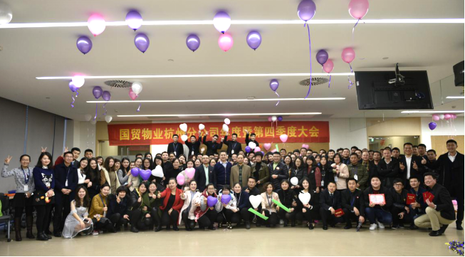 201710713:10, 伴随着新年脚步的临近,以“团结奋进,追求卓越”为主题的国贸物业杭州分公司2016年年度暨第四季度表彰大会在7-2-14-S白云山庄召开,出席本次会议的有国贸物业总经理王文浩、副总经理凌兰、智能运营部经理赵桃波,国贸物业杭州分公司总经理蒋建军、副总经理陈嘉星、总经理助理江旭及各级员工共计250余人。