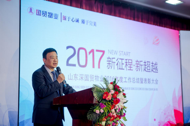 一元复始,万象更新。为总结一年来的工作,表彰2016年度国贸物业涌现出的优秀集体及先进个人,同时呈现公司的企业文化成果,1月21日下午,山东公司在舜耕山庄·重华堂隆重举行2016年度工作总结表彰大会暨迎春联欢晚会。深圳国贸物业副总经理、山东深国贸物业董事长陈国连应邀出席了大会,山东公司总经理陈伟、常务副总王䶮等公司领导,以及各项目管理人员与部分员工参加了此次盛会。