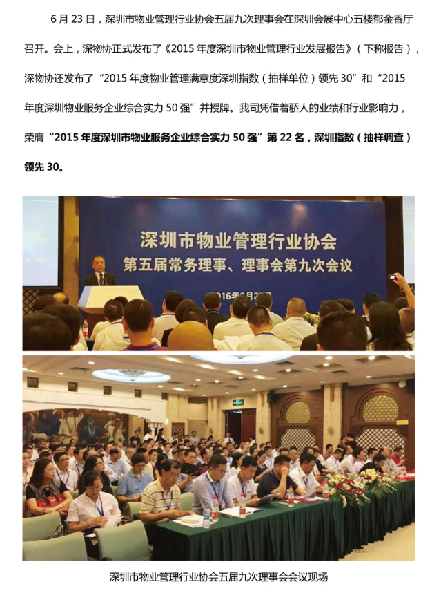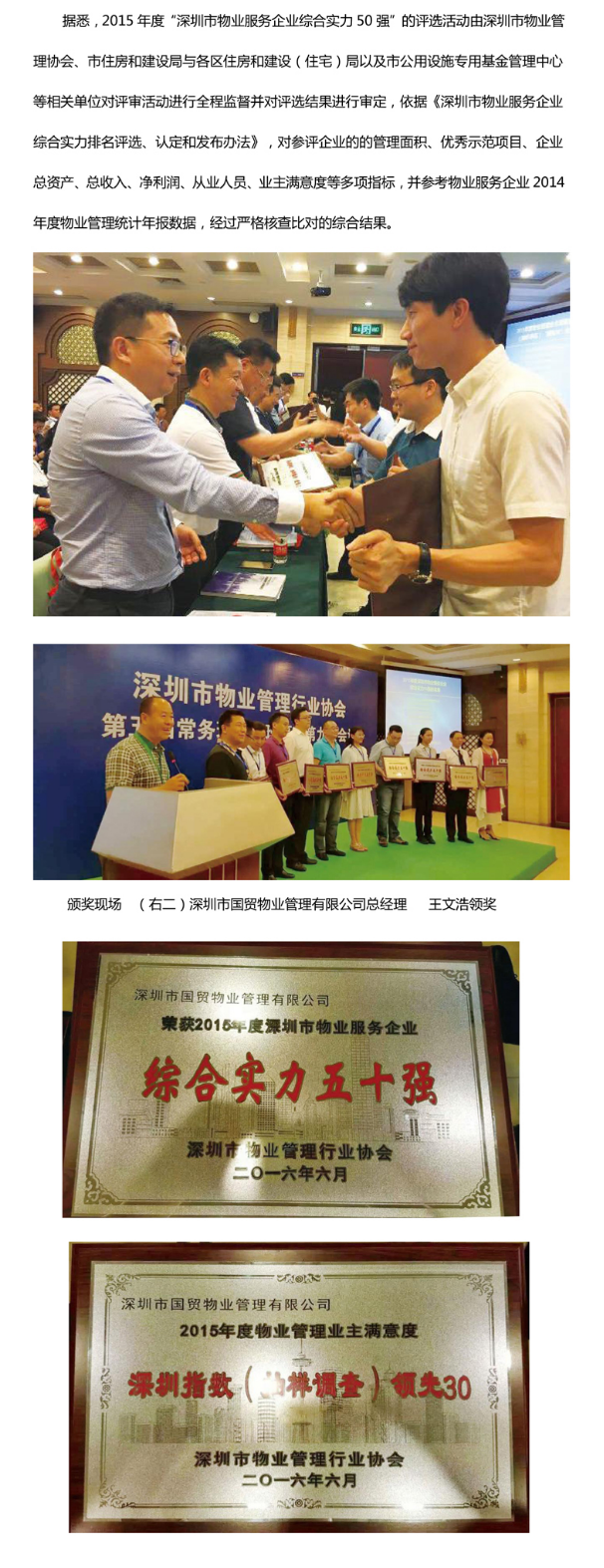 我司荣获“2015年度深圳物业服务企业综合实力50强”