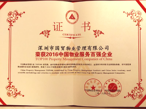 6月21日,“2016中国物业服务百强企业研究报告发布会”在北京西城区隆重召开。会上,国贸物业凭借业内领先的综合实力和服务水平,通过全体员工的共同努力,从全国422家优秀物业服务企业当中,被评为中国物业服务百强企业,荣获全国排名第38名的成绩。