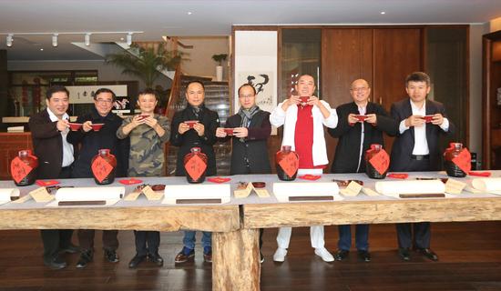 1月26日上午,在太极禅院举行了第一次校董会议及“湖畔大学”项目启动仪式,校董们通过藏酒、题字等形式庆祝项目启动。
