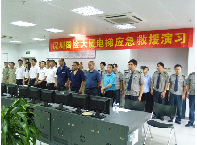 为保障电梯的安全运行,及处理突发事件的能力,我公司联合深圳市鹏检物业国检大厦管理处模拟电梯困人,进行了一次“电梯困人应急救援演习”