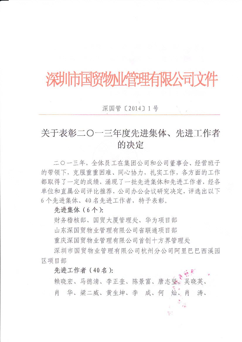 国贸物业2013年终总结大会圆满落幕 文/市场拓展部 陈梅林 图/行政事务部 马德清 |