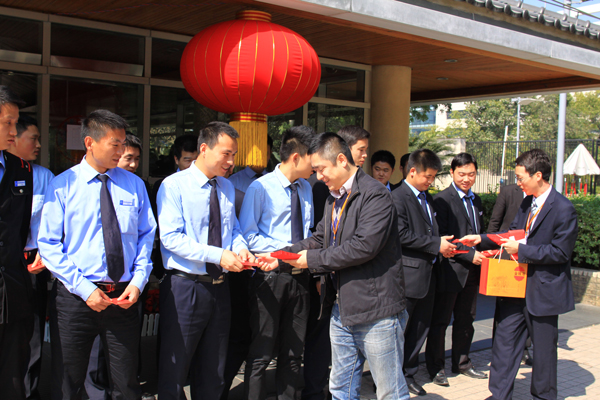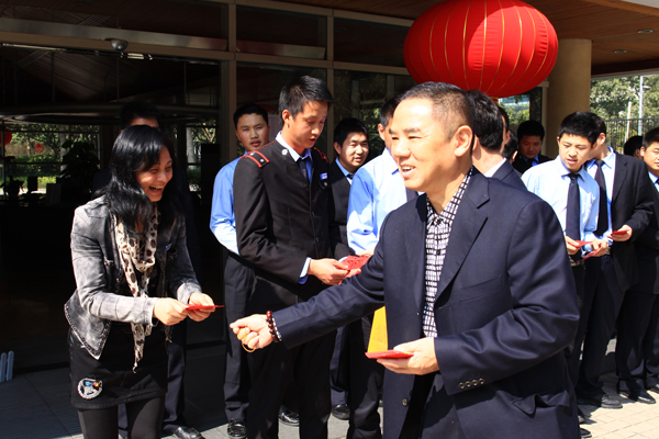 | 总经理王智勇慰问华为项目部职工 | 华为项目部经理蒋建军、总监助理李宁为员工派发马年利是 |