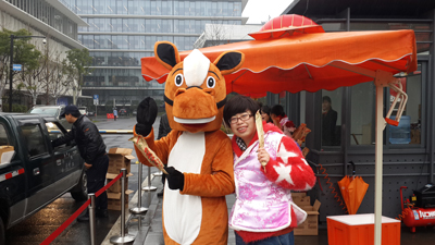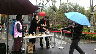年初八,上班首日,为营造新年好彩头,烘托节日气氛。阿里行政部精心筹备策划“开门红”活动,特邀高管领导,与行政后勤团队一起进行开门利是的发放工作。 早上7:30,由项目总监凌兰与十几名管理人员前往园区各门岗进行活动场地布置,利是(好时巧克力、糖葫芦)的发放,扮马闹新春,并现场发布关于新年愿望的来往动态。 寒风凛冽,小雨淅沥,历时3个小时的奋战圆满完成园区1万人的“开门红”保障工作。