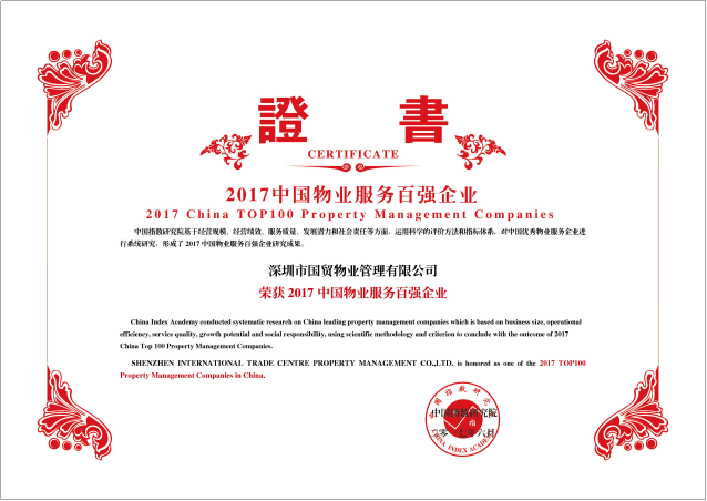 在今年迈入第33年个年头的国贸物业已经连续多年荣膺“中国物业服务百强企业”殊荣,此次再次荣膺此称号,不仅是对国贸物业服务水平的高度认可,更是国贸物业符合现代高品质物业服务企业的重要体现!