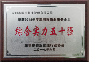 国贸物业荣膺2016年度深圳市物业服务企业综合实力50强
