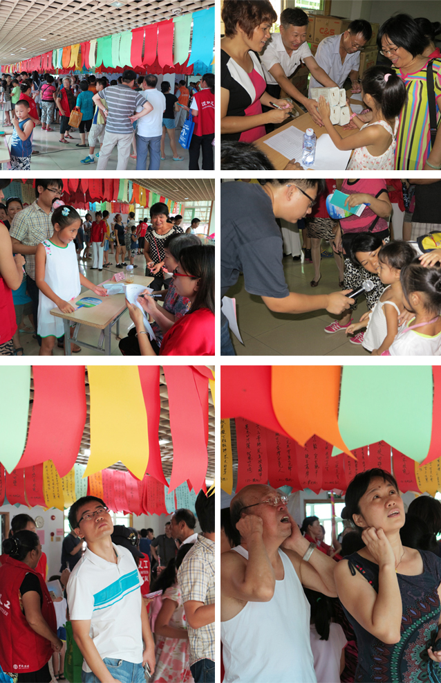 2014年9月6日16:00时,在风和日丽生活馆三楼举行了以“月满情意浓、睦邻庆中秋”为主题的丰润·风和日丽·新华城2014年中秋猜谜活动。 活动现场人头攒动,热闹非凡。在欢庆的热盘鼓和充满青春活力的健美操的相衬下,猜谜活动现场异常火爆。互动节目——说出带“月”的词语或诗句,现场人们一下热情高涨,纷纷举手回答,当回答正确的人接过工作人员递上的奖品,兴高采烈。面对悬挂着的300条谜语,无论是小朋友,还是八十多岁的老年人,大家都兴致勃勃投入到猜谜之中,男女老少纷纷开动脑筋,认真琢磨,各显其才。有的一家老小就谜语展开了你一言、我一语的讨论;有的独自思索;有的赶紧掏出手机,借助网络搜索。在核对答案处排队的人群中,有的胸有成竹,有的急切地想知道自己猜得对不对,担心被前面的人猜中。每当一条条谜底被猜中,猜中者喜笑颜开,领取奖品;未猜中的,没头系,不放弃,再猜,转头再来…… 当天天气炎热,但活动现场人们的热情更高,工作人员顾不上满头大汗,热情、认真地核对答案和发放奖品,猜谜者兴奋地领取奖品,处处可见乐呵呵的笑脸,现场洋溢着喜庆、和谐的节日气氛。