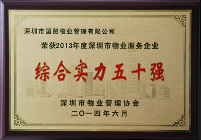 6月25日,在深圳市物业管理协会2014年会员代表大会上,我司获2013年度深圳市物业服务企业综合实力50强(排名第19)。同时获得2013年度深圳市物业管理协会优秀会员奖、2013年物业管理业主满意度深圳指数(抽样单位)领先30企业(排名第8)。这是我司第7次获得综合实力50强奖、4次获得物业管理协会优秀会员奖(其中2次获得“特殊贡献”优秀会员单位)和2次获得物业管理业主满意度深圳指数(抽样单位)领先30奖。 近年来,国贸物业管理公司勇于探索创新,坚持优质服务,大力拓展市场,行业地位不断提升,经营发展取得可喜成绩。