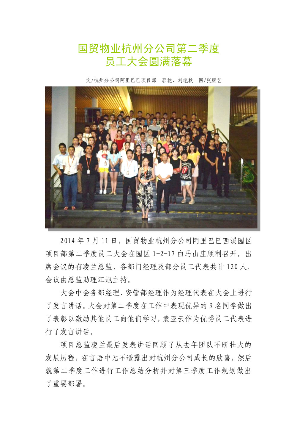 国贸物业杭州分公司第二季度员工大会圆满落幕
