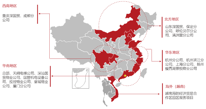 国贸物业业务遍布华南、西南、华东、华北等全国各个地区及中越合作区,并于2019年跨出国门,走向了国际市场,成功与中越(深圳●海防)经济贸易合作区园区开发商建立了物业服务合作关系。