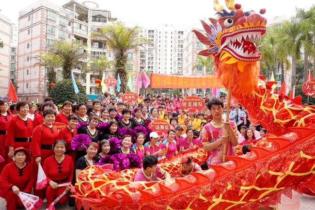 活动现场,挤满了翘首观看舞龙表演的居民,只见彩龙上下腾跃,左右翻腾,精彩的舞龙表演让居民感受着祥龙带来的吉祥和平安,居民个个脸上洋溢着节日的喜悦。
