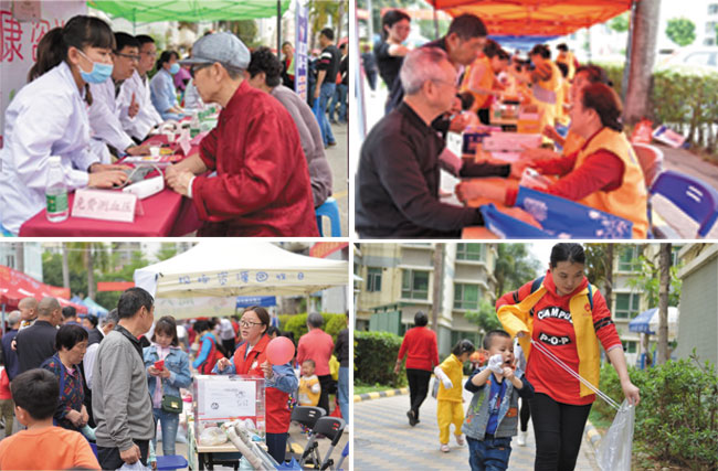 环境保护类服务项目也得到了大家的积极响应。社区义工队、丰润幼儿园、管理处携手开展清洁家园活动,大手拉小手,共同捡拾垃圾,为社区营造干净整洁的环境。社区居民纷纷捐赠旧书旧衣物到龙华区零废弃促进会的资源回收摊位,把家里的过期药品送到海王星辰的过期药品摊位回收点,共同为环保做贡献。