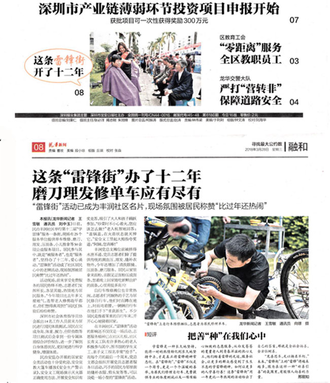媒体刊登报道:2018年3月28日 宝安日报第C01版——龙华新闻