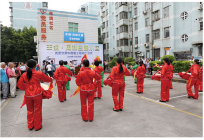 最后,在龙华新区城市建设局水务科科长李晓华先生的一声令下,礼炮声、锣鼓声、小区居民的掌声、欢笑声中,迎来了30几名穿着规范的施工队伍。