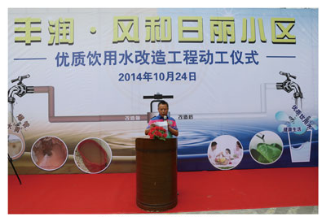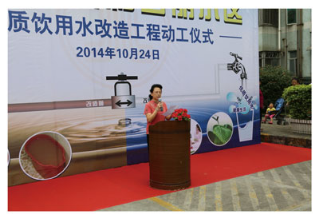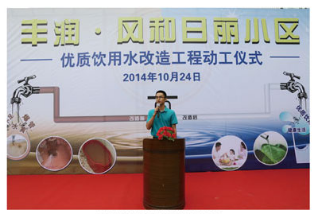仪式简单而隆重,9:20仪式正式开始,由风和日丽管理处主任赵伟先生主持。龙华新区城市建设局水务科李晓华科长先生首先介绍了《深圳市优质饮用水入户工程》具体内容,龙华新区管委会在充分听取民意的基础上,决定免除用户本需承担的每户200元的改造费用,改造费用由市、新区两级财政共同承担解决。