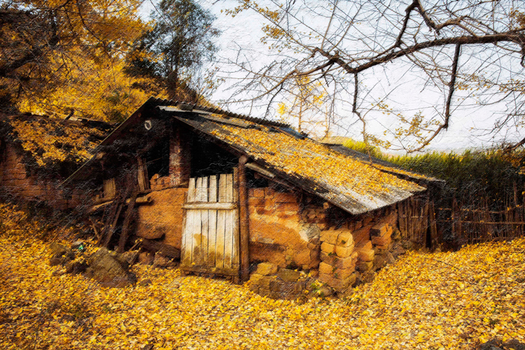 金黄金黄的杏叶落在房前屋后,满地金黄。