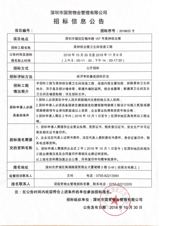 美林综合楼B栋天面阴角、外墙防水补漏工程招标公告