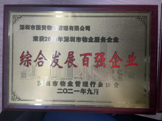 - 国贸物业荣获2021年深圳市物业服务企业综合发展百强企业综合实力排名第15名