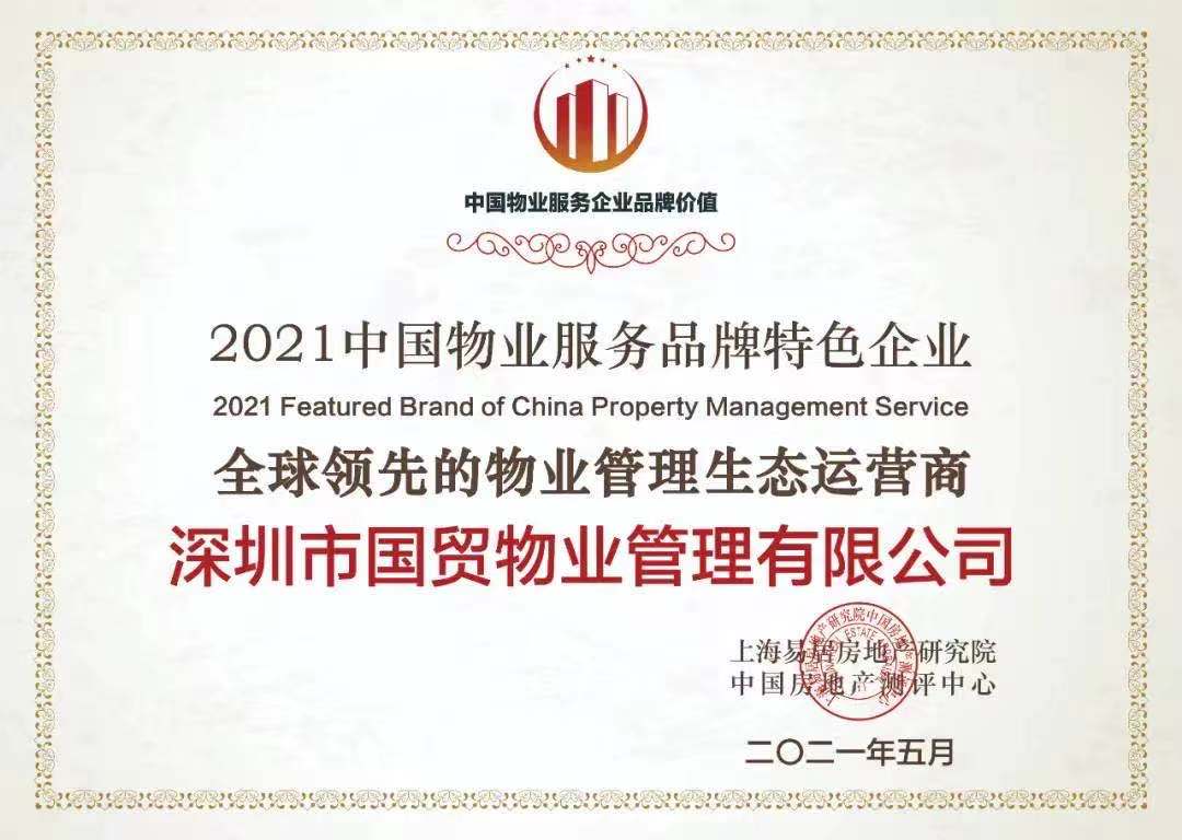 - 国贸物业荣获2021年中国物业服务品牌特色企业全球领先的物业管理生态运营商