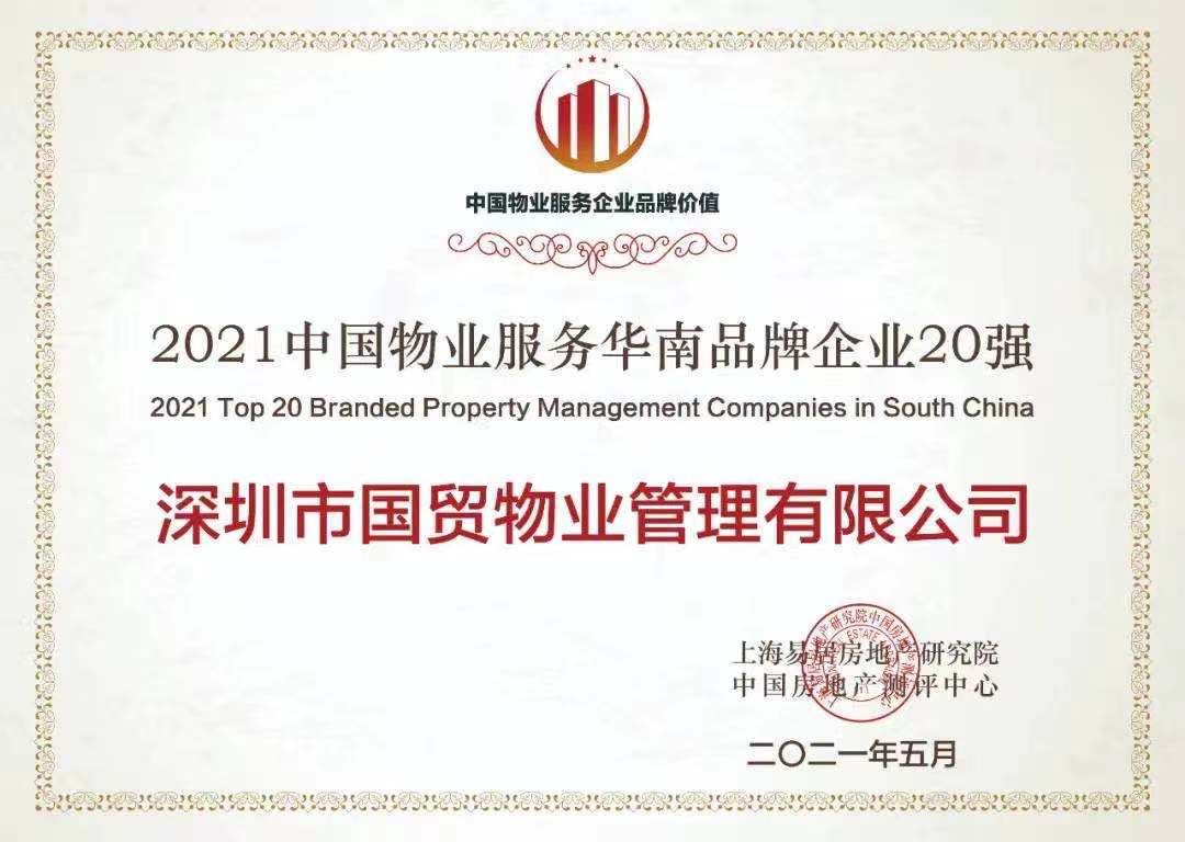 - 国贸物业荣获2021年中国物业服务华南品牌企业20强