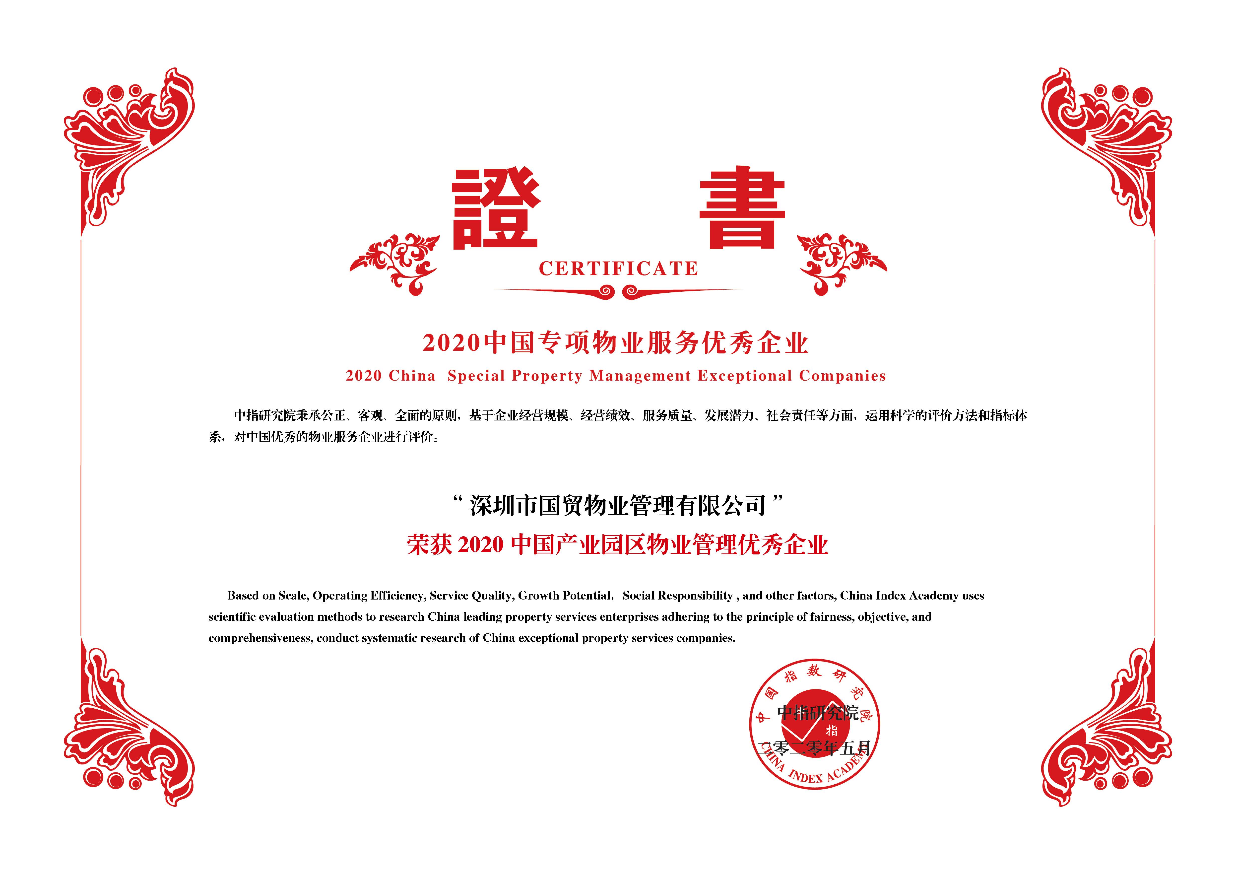- 国贸物业荣获2020年中国产业园区物业管理优秀企业